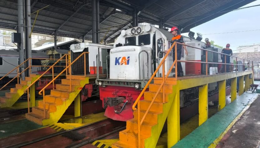 Aktivitas perawatan terpantau pada Selasa (24/2) di Dipo Lokomotif Medan, saat tim teknis melaksanakan perawatan triwulanan (P3) terhadap lokomotif seri CC2010404 dan BB3038404. Pekerjaan meliputi pemeriksaan rangka bawah, alat perangkai, pembersihan ruang baterai, perangkat kelistrikan, sistem pengereman, hingga memastikan fungsi suling lokomotif bekerja optimal.